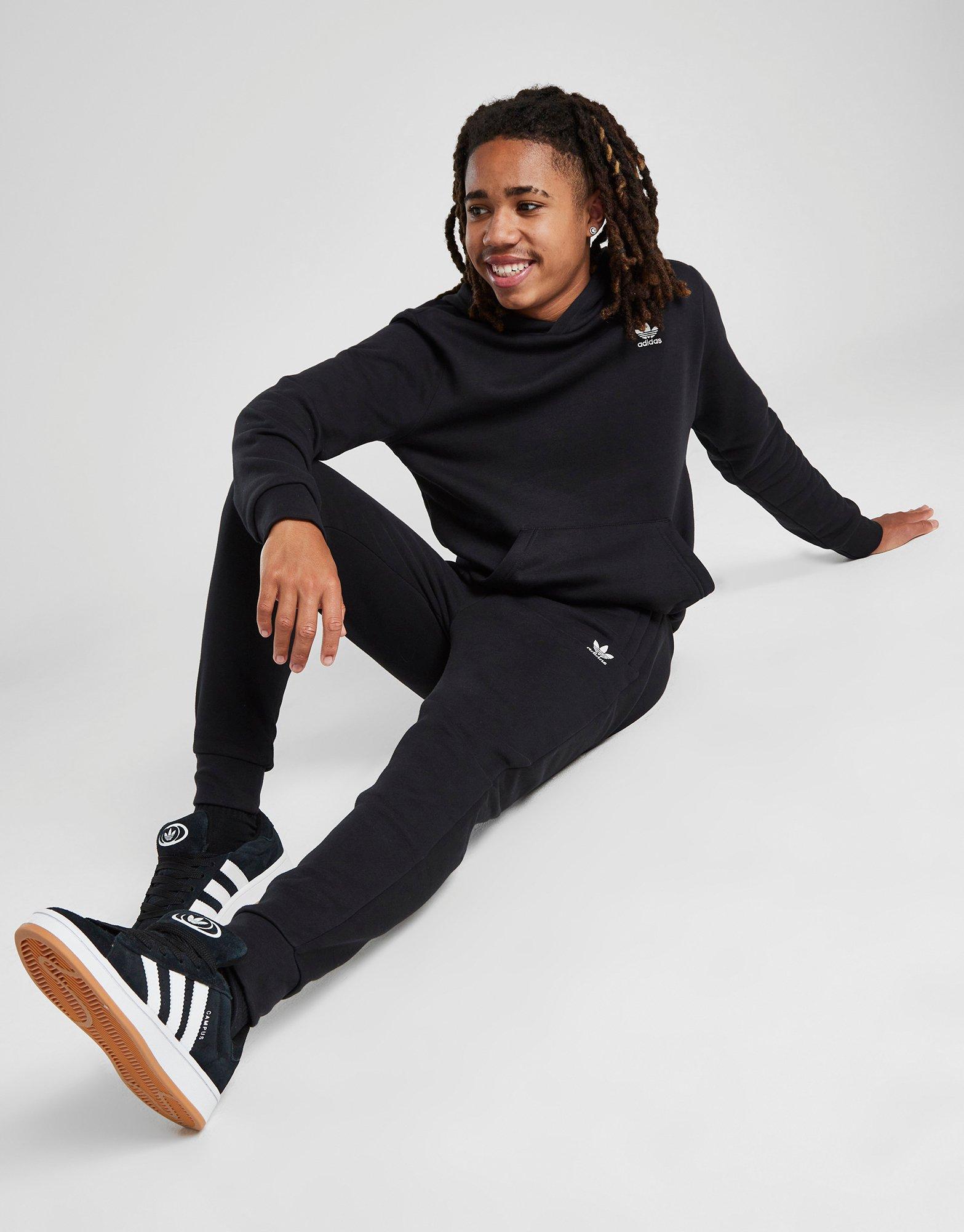 Frissítsd fel casual szettjeid ezzel az adidas Originals Trefoil Essential Fleece Joggers junior jogger nadrággal. A poláros tapintású pamut és újrahasznosított poliészter keverékéből készült, fekete modell hagyományos fazont kapott. A zsinórral állítható deréknak és a passzéknak hála a modell alkalmazkodik az egyéni adottságokhoz. Plusz pozitívum az oldalzsebek. A combra hímzett Trefoil logó teljessé teszi. Gépben mosható. | H32406