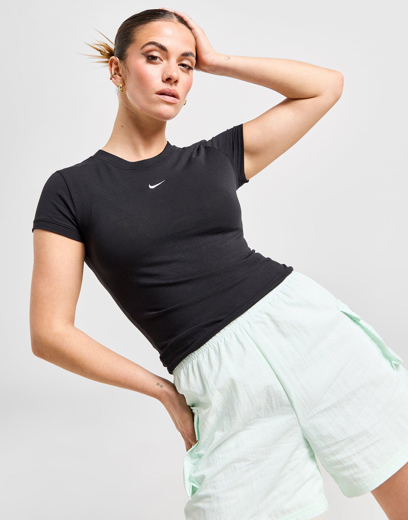 Emeld új szintre mindennapi outfited a Nike Essential Sportswear Chill Knit női pólójával. A slim-fit fazonú, fekete felső szuper puha, rugalmas anyagból készült, így hosszan tartó kényelmet nyújt. Klasszikus, kerek nyakkivágással és rövid ujjakkal rendelkezik. A modellt a mellkast díszítő, jellegzetes Swoosh logó koronázza meg. Gépben mosható. | A modell 170 cm magas, és S-es méretet visel.